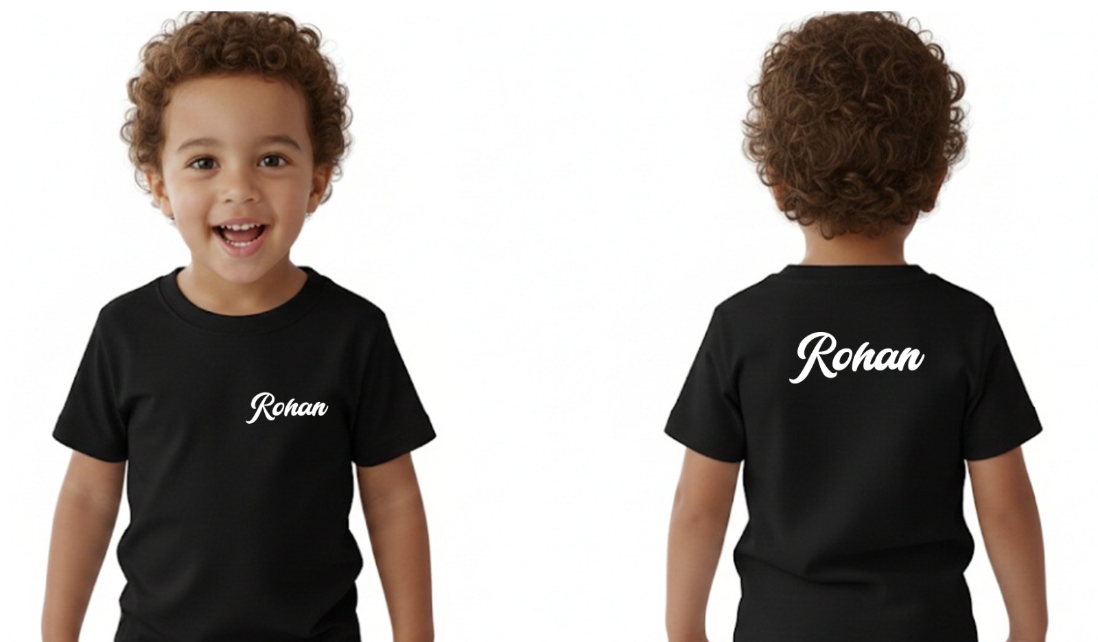 Black Round Neck Half Sleeve Kids Sizes-Only Front Pocket & Back Name